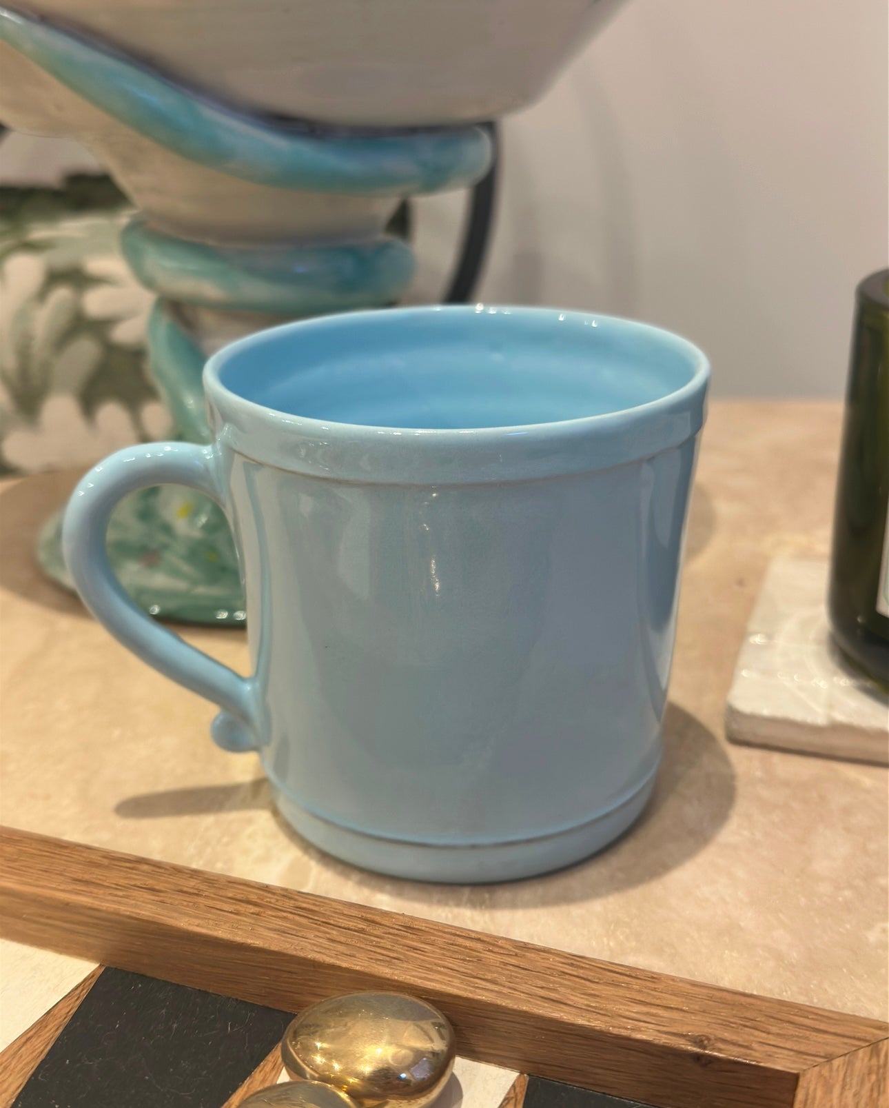 Tea mug light blue handmade in France